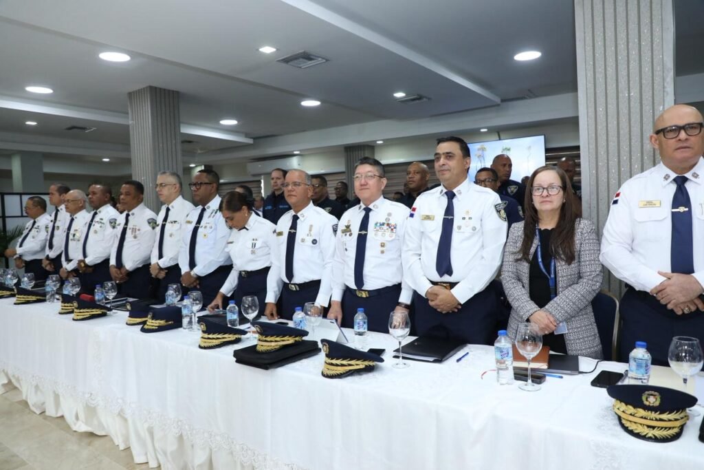 La sesión de trabajo se está llevando a cabo en el Salón del Club de Oficiales del Palacio de la Policía Nacional. En ella se evalúan las tareas cumplidas hasta la fecha, los resultados alcanzados y las nuevas disposiciones que serán adoptadas para continuar elevando los niveles de seguridad en beneficio de los dominicanos.